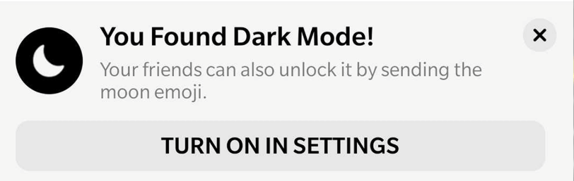 De momento esta función se activa enviando el emoji (Luna) a cualquier contacto, automáticamente la aplicación te notificara el desbloqueo de esta función con una agradable animación. Puedes desactivarlo cuando quieras en la pestaña de perfil de la App.